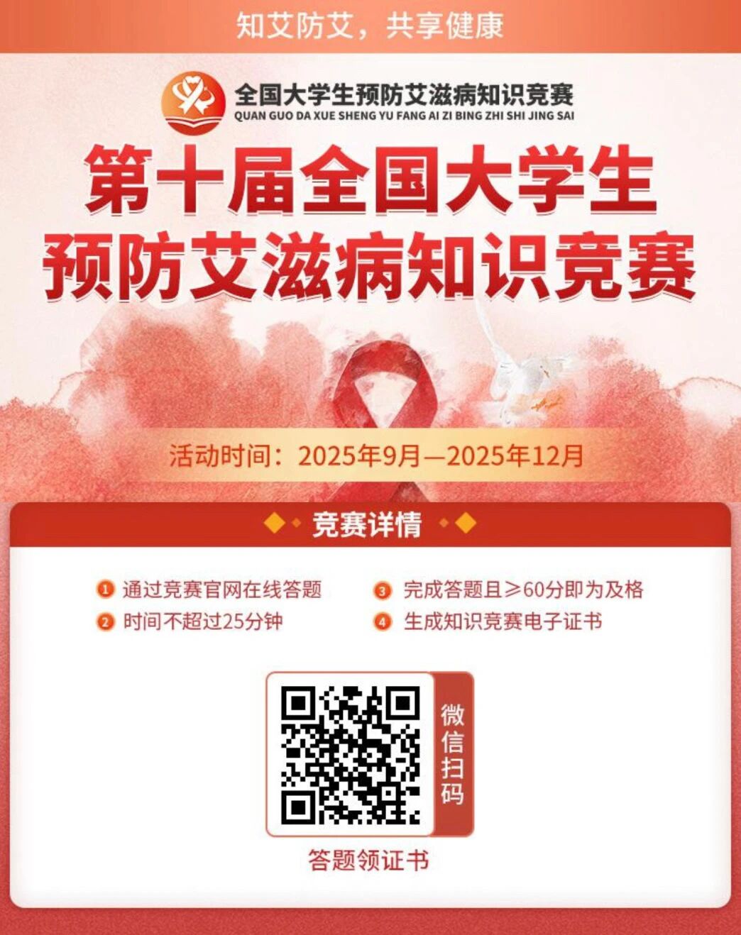 为深入贯彻落实《中国遏制与防治艾滋病规划2024-2030年》策略与措施,宣传普及艾滋病防治知识,进一步提高青年学生对艾滋病的认知水平,持续推动艾滋病防治宣传教育“进校园”活动开展,助力健康中国战略和联合国 2030 年终结艾滋病流行目标的实现,中国预防性病艾滋病基金会、中国性病艾滋病防治协会、中国健康教育中心决定联合主办“第十届全国大学生预防艾滋病知识竞赛暨高校防艾宣传旗帜接力传递活动”并提出宣传活动倡议。